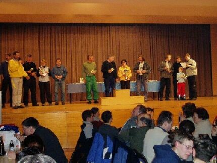 Wie nicht anders zu erwarten, landeten beide Teams auf dem Stockerl. Dass nicht der erste Platz erobert werden konnte, war noch zu verkraften. Dass aber die "Alten" schneller waren als die "Jungen" war dann doch für einige Anwesende eine mittlere Tragödie. Den Höhepunkt des Abends bildete aber die Preisverleihung mit der Pokalübergabe. Der (nach Expertenmeinung) aus der Vorkriegszeit stammende Pokal für den dritten Platz konnte für die Sektverkostung leider nicht herangezogen werden, weil er bewohnt war.