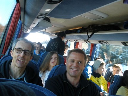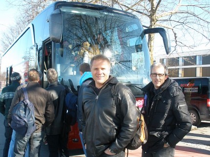 Am Samstag bestiegen Kurt, Otmar, Kilian, Klara, Anna, Hanno, Walter und Uta in Dornbirn den Bus – und ab ging´s in die Schweiz. Im Bus wurden wir von den Dornbirnern herrlich versorgt. Zum Frühstück gab´s Kaffee, Limo, Topfentascherl, Nusskipfel und Bier. Wir haben reichlich zugegriffen. Die Fahrt verging wie im Fluge und zu Mittag waren wir schon in der Halle.