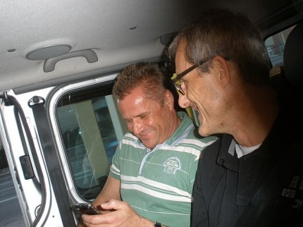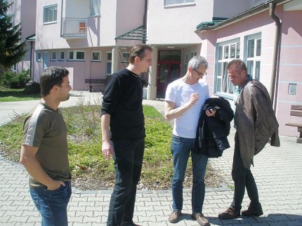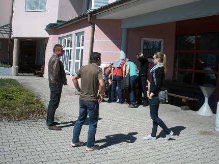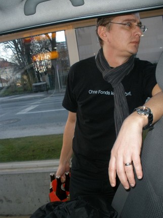 Um 5 Uhr läutete der Wecker bei fast allen, außer bei einem, aber auch der kam fast pünktlich in Superman-Manier nach Wolfurt. Die Abfahrt war für 6 Uhr bei der Halle geplant. Mario war willig, stand pünktlich am Bahnhof, aber die ÖBB strich einfach den Zug. Das bedeutete 30 min in der Kälte auf die nächste Verbindung warten. Hanno und Uta waren pünktlich am Bahnhof Wolfurt, nur Marios Zug kam nicht. Daher musste Walter wieder bei der Feuerwehr Wolfurt in Kälte und bei Nässe warten. Der Himmel weinte. Der neue Plan: gemeinsames Frühstück in der Schwanen-Bäckerei. Dann kam Mario doch noch. Mit einer dreiviertel Stunde Verspätung startete der Bus dann doch noch. Gerhard, Michal, Norbert, Mario, Hanno, Walter und Uta fuhren - bewaffnet mit 2 Trommeln, Trillerpfeife, Tröten und Megaphon - Richtung Süden. René war schon am Vortag mit dem Zug gefahren, der Rest der Mannschaft reiste aus Wien an. Gemeinsamer Treffpunkt war somit das Jugendgästehaus in Klagenfurt.