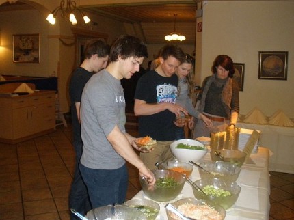 Fahrerwechsel und weiter ging´s. Nach freier Fahrt kamen die bereits leicht müden Krieger pünktlich zum Mittagessen bei der Unterkunft der Mannschaft an. Eine gemeinsame Stärkung beim Italiener und ab ging´s in die Halle. Und das trotz strahlendem Sonnenschein und fast sommerlicher Temperaturen.