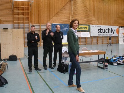 Die Überraschung des Matches lieferte Alexandra Mathis, die nicht nur im Damendoppel gemeinsam mit Elisabeth Baldauf, sondern auch im Dameneinzel gegen Claudia Mayer (WBH Wien) jeweils in zwei Sätzen wichtige Siege für Wolfurt holte.