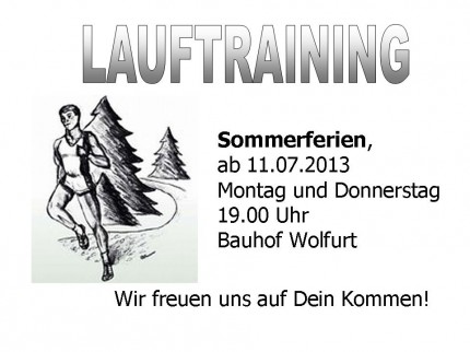 Ab Donnerstag, 11.07.2013 werden wir uns wieder jeden Montag und Donnerstag mit Laufen fit halten. Wir freuen uns auf Euer Kommen!