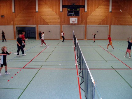 Nachdem sich 35 Kinder und Eltern zum Spielen angemeldet haben, ist die Turnierleitung leicht ins Schwitzen geraten. Der größte Raster war "nur" für 32 Teilnehmer. Aber nach kurzer Beratung konnten wir 3 Eltern dazu überreden, im Team anzutreten.