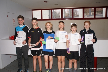 Am 13.03.2016 wurde das 3. VBV Schülerdoppelranglistenturnier in Götzis ausgetragen. Aus Wolfurt nahmen Anna, Johanna und Ramona, Adrian, Jan, Lennard, Paul und Sebastian am Turnier teil. Die drei Damen und fünf Herren erkämpften vier Podestplätze.
