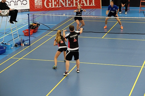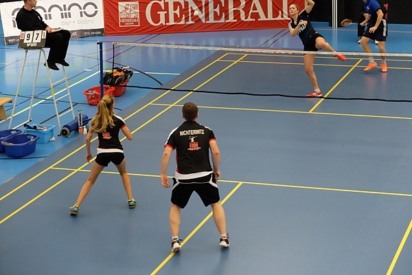 Mit neuem Mut starteten wir am Sonntag gegen Linz. Beide Herrendoppel präsentierten sich deutlich verbessert. V.a. im 1. Doppel agierten Matevz und Rene souverän wie vom letzten Jahr gewohnt und dominierten ihre Gegner nach belieben. Peyo/Jan und Alex/Tina stellten in den weiteren Doppeln auf 3:0. Anschließend mussten wir lange auf die erlösenden weiteren Punkte warten.
