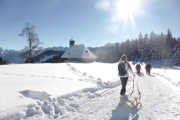 Von Schwarzenberg ging es dann mit dem Bus wieder zurück aufs Bödele und von dort mit dem Rodel runter nach Ammenegg, eine etwas steilere Rodelstrecke. Schließlich waren alle Damen gesund und glücklich an der Bödelestraße angekommen. Die größten Herausforderungen hatten an diesem Tag dann doch die Lachmuskeln!