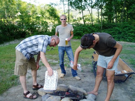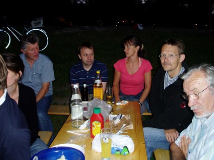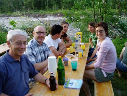 Am 30. Juni fand das 3. BSC-Saisonabschluss-Grillfest an der Ach statt. Trotz starkem Alternativ-Programm (WM-Viertelfinale Deutschland - Argentinien) trafen sich ca. 30 Federballer aus Wolfurt und Schwarzach zum gemütlichen Grillen. Da Obergrillmeister Gerhard urlaubsbedingt fehlte, mussten diesmal andere ans Werk. Wie man an den Fotos sehen kann, haben sich Peter und Walter hervorragend geschlagen.