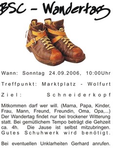 Zum Saisonauftakt veranstalten wir einen "BSC - Wandertag"