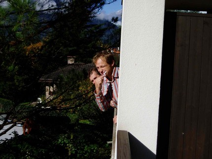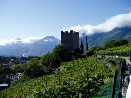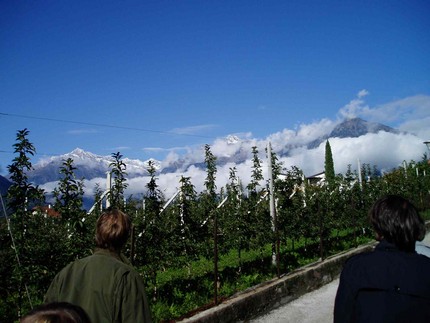 Gestärkt spulte Fahrer Gerhard souverän Kilometer für Kilometer ab. Problematisch wurde es erst, als wir in Meran unser Hotel anfahren wollten. Dass unser Navigator Leite auf Grund der fortgeschrittenen Stunde (Nachmittag) schon ein wenig schläfrig war, war noch zu verkraften. Die Wegbeschreibung von Uta machte unseren Fahrer dann aber doch nervös: "Nach 1 Meter rechts abbiegen" - Nachdem es aber nach 1 Meter beim besten Willen nichts zum Rechts-Abbiegen gab, folgte die Korrektur: "Es könnten aber auch 100 m sein, oder war es doch 1 Kilometer?"