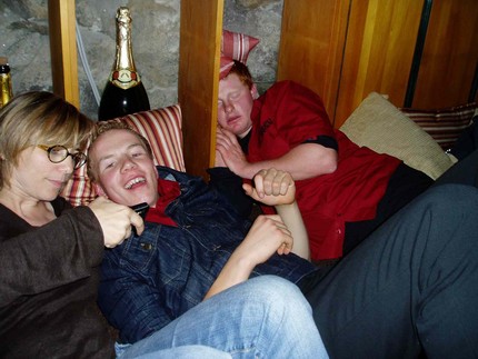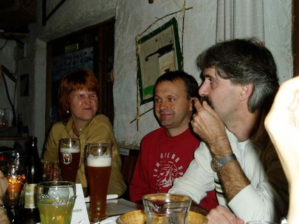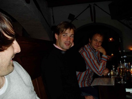 Um Mitternacht war dann Schluss mit Törggelen. Wieder wurden die Alten und Schwachen ins Bett gebracht, damit der harte Kern (Uta, Margreth, Berni, Mats) noch das Nachtleben von Meran genießen konnte. Abgesehen von einem kleinen Zwischenfall, als Mats Margreth gegen ungestüme Anmachversuche eines Ravensburger Bauernsohns verteidigen musste, verlief alles glatt. Man munkelt, dass es um eine Ablösesumme von mindestens 25 Kühen gegangen ist.