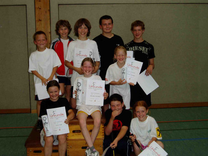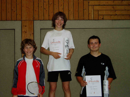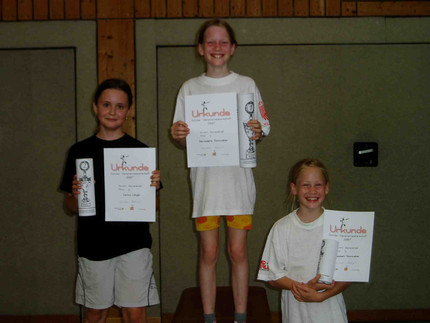 Gestern fanden bei schönem Wetter und hohen Temperaturen die Vereinsmeisterschaften der Schüler statt. Bei den Jungs dominierte die Familie Kaufmann, bei den Mädels räumte die Familie Sonnweber groß ab. Moritz Kaufmann konnte sich gegen seinen Bruder Gabriel mit 21:14 und 21:15 durchsetzen. Bei den Mädels war es deutlich knapper: Bernadette Sonnweber siegte mit 21:19 gegen Corina Längle.
