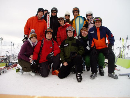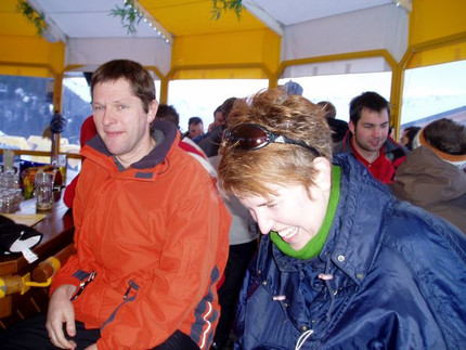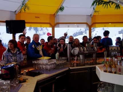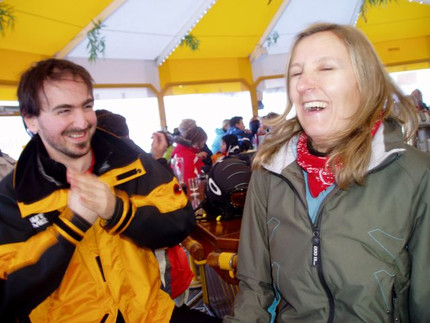 Das Schifahren selbst war genial - Sonnenschein, beste Pistenverhältnisse, Curry-Wurst zum Mittagessen, Lumumba für Mary und Lambada für Leite.