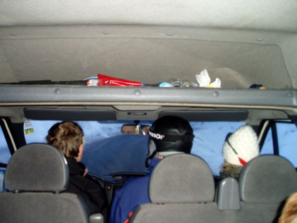 Auf Grund widriger Umstände wurde Nummer 1-Fahrer Gerhard in die dritte Reihe verbannt und Smolle übernahm das Steuer. Leite war immer noch nicht überzeugt und behielt seinen Helm auch während der Autofahrt auf dem Kopf - wie sich später herausstellte, war diese Aktion mehr als berechtigt. Als Smolle nämlich merkte, dass er kurz vor Damüls eine Schlange von mindestens 20 Autos anführte, verzichtete er in Folge darauf, die Kurven anzubremsen.