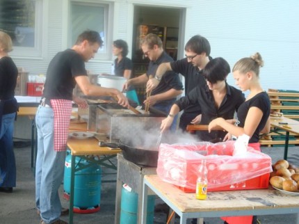 14 fleißige Helfer des Raiffeisen Union BSC Wolfurt waren vergangenen Samstag bei einer Firmeneröffnung in Wolfurt im Ei