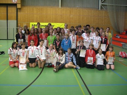Sarah Nigsch und Bernadette Sonnweber und Hanna Köb mit Sarah Latzer im DD U15.