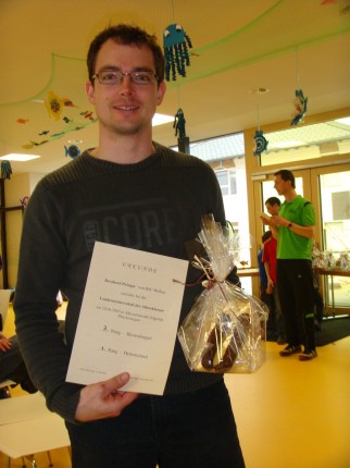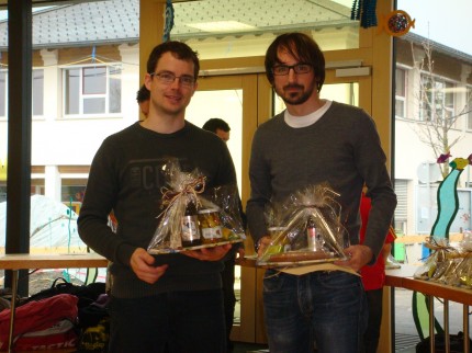 Eine Überaschung gab es im Herreneinzel AK 30/35: Der langjährig amtierende Abomeister Gerhard musste sich in einem hart umkämpften Finale Bernhard geschlagen geben. Der nutzte die Gunst der Stunde und die ungewohnte Halle, um erstmalig seit vielen Jahren Gerhard in die Schranken zu weisen.
