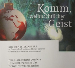 Am Samstag, 17.12.2011 findet ab 20.00 Uhr ein Benefizkonzert zu Gunsten des Franziskanerklosters Dornbirn