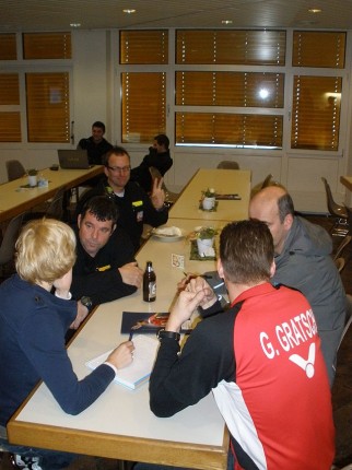 Im Mixed-Finale werden sich Alex mit Paul und Lisi mit Roman gegenüberstehen. Alex trifft im Einzel-HF auf die Nr. 1 Claudia Mayer, David auf Heimo Götschl. Im DD sind Alex und Lisi natürlich auch noch dabei und spielen morgen im HF gegen die Feldkircherinnen Kohlfürst/Ziesig. Wir können morgen also bei fast allen Spielen mit unseren Cracks mitfiebern und sie lautstark unterstützen, so wie sie das von den Bundesligabegegnungen gewohnt sind.