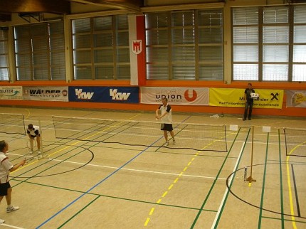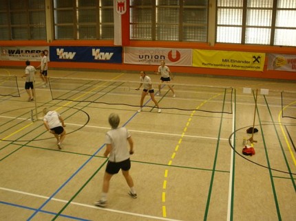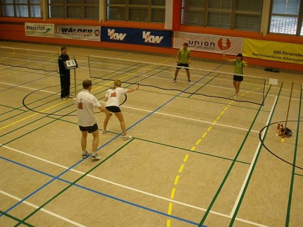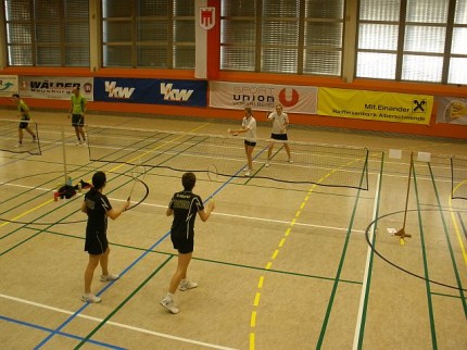 Vergangenen Sonntag, 25.03.2012, wurden in Alberschwende wieder mal die Altersklasse-Landesmeisterschaften gespielt. Mit dabei waren 7 Federballer und Innen vom BSC, Iris, Michi, Sandra, Uta, Gerhard, Mats und Wolfi. Leider mussten wir auf Piri verzichten, der krank zu Hause bleiben musste. Er hat was verpasst! Wie immer war die Veranstaltung ein Familienfest, das schon um 7 Uhr mit einem gemeinsamen Frühstück und sehr gemütlich begann. Da Michi erst im Doppel zum Schluss des Turniers einstieg, musste sie leider auf das gute Frühstück verzichten. Auch die Torten und das Mittagessen waren eine Augenweide und ausgezeichnet zu essen.