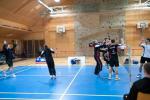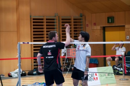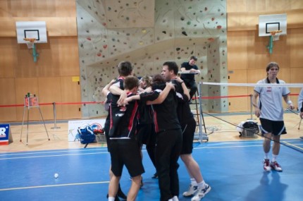 Rene und David im Herrendoppel und Lisi und Alex im Damendoppel sorgten für einen perfekten Start und stellten auf 2:0. Nach Davids Erfolg im 1. Einzel, durften wir dann zum ersten Mal an einen vollen Erfolg glauben. Nachdem Alex sich Kodric knapp geschlagen geben musste und unser Mixed doch überraschend klar unterlag, schien sich die Partie schon zu drehen. Doch Rene gewann sein Einzel souverän und Matthias hielt das Spiel gegen Heimo Götschl lange offen und konnte, wie sich später zeigte, entscheidende Punkte gewinnen. Im abschließenden Doppel benötigten Matthias und Moritz noch 29 Punkte um den Erfolg klarzustellen, und so war der Jubel der zahlreichen Fans aus dem Ländle (es waren wohl mehr als Wiener Fans) riesig, als dies beim Stand vom 11:14 im 2. Satz geschafft war.