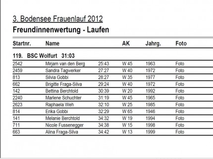 Die Mädels unter der Leitung von Sandra haben super Ergebnisse erbracht. Insgesamt schaute dabei mit einer Durchschnittszeit von 31,03 min der 119. Gesamtrang heraus.